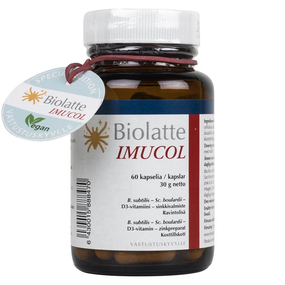 Biolatte IMUCOL on täysin säilöntäaineeton, gluteeniton ja laktoositon.