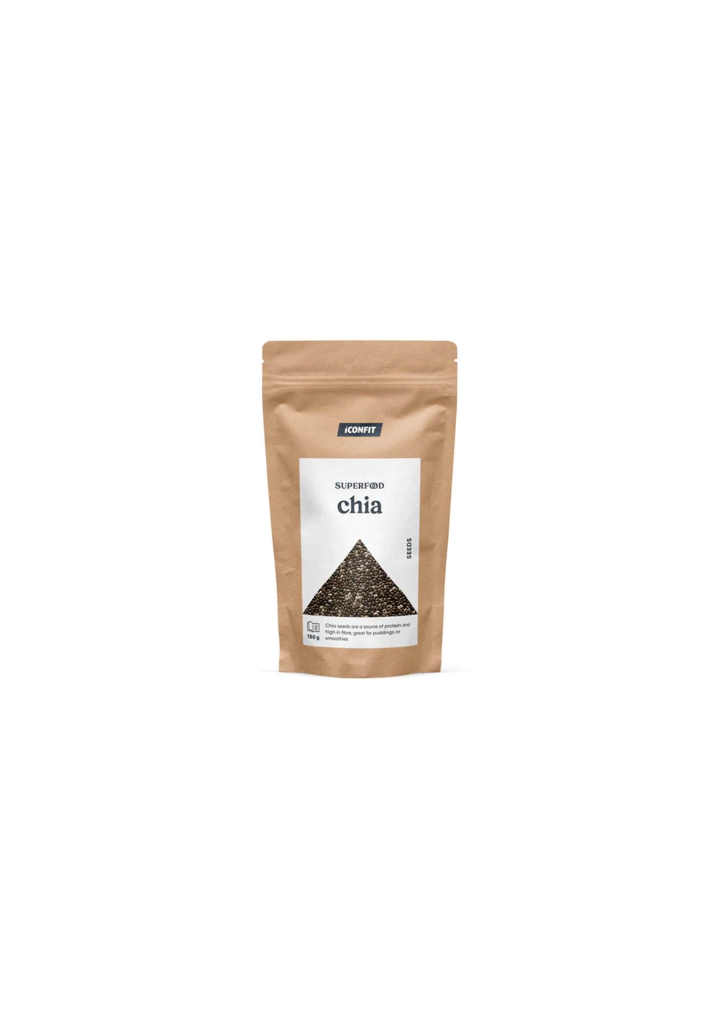 ICONFIT Chia-siemenet ovat luonnollinen superfood, joka sisältää runsaasti kuitua, omega-3-rasvahappoja, korkealaatuista proteiinia sekä tärkeitä vitamiineja, mineraaleja ja antioksidantteja.