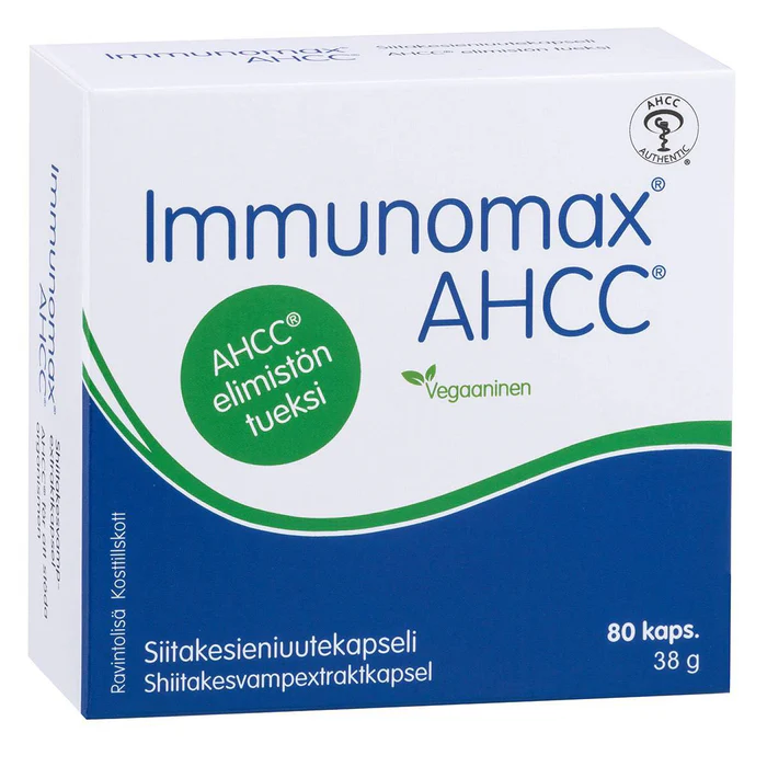 Immunomax Siitakesieniuutekapselit sisältävät siitakesienestä (Lentinula edodes) peräisin olevaa standardoitua, biologisesti aktivoitua AHCC sieniuutetta. Aktiiviset ainesosat, erityisesti polysakkaridit ja glykoproteiinit tukevat elimistön hyvinvointia.