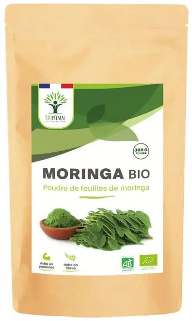 BiOptimal Moringa -jauhe valmistetaan Moringa oleifera -puun lehdistä, joita kutsutaan usein ”ihmepuuksi”. Moringa on yksi ravinnerikkaimmista kasveista maailmassa ja sisältää luonnostaan runsaasti vitamiineja, mineraaleja, proteiinia ja antioksidantteja.