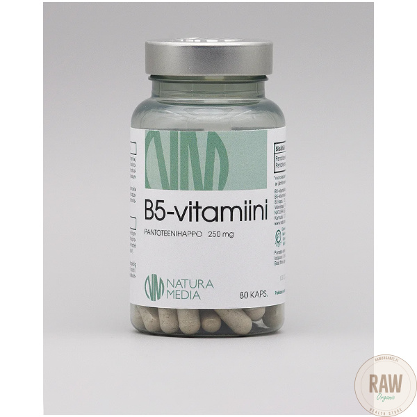 Pidä kehosi ja mielialasi tasapainossa Natura Median B5-vitamiinilla (pantoteenihappo). Tämä vesiliukoinen vitamiini on välttämätön osa päivittäistä hyvinvointia, sillä se osallistuu energiantuotantoon, rasva-aineenvaihduntaan sekä hermoston toimintaan.