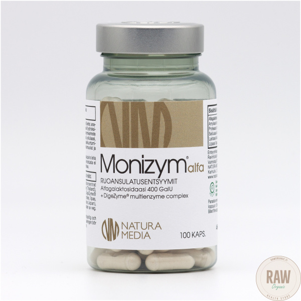Natura Median Monizym Alfa on valmistettu omassa tuotannossamme Raisiossa. Tuote on täysin kasviperäinen, eli soveltuu myös vegaaniseen ruokavalioon. Olemme halunneet varmistaa, että tuotteemme soveltuu mahdollisimman monelle – siksi se ei sisällä tyypillisiä allergeeneja kuten gluteenia, viljoja, maitoa tai sen osia, hiivaa, kananmunaa, soijaa tai pähkinää, eikä myöskään säilöntä- tai väriaineita.