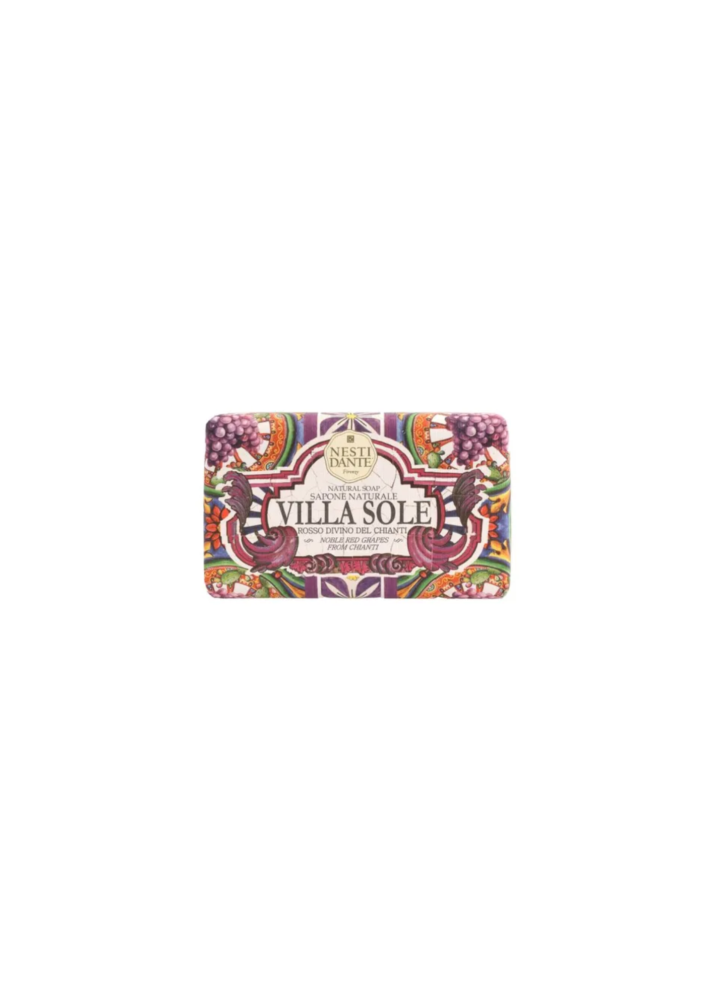 Nesti Dante Villa Sole Rosso Divino Del Chianti on vegaaninen saippua, joka hemmottelee ihoa Toscanan luonnon ainesosilla, kuten aidoilla punaviinirypäleillä Chiantin viinialueelta. Jokainen saippuapala on pakattu kauniisti suunniteltuun paperiin, jonka kuviointi ammentaa inspiraationsa kuuluisista majolikalaatoista – terrakottapohjaisista, valkoiseksi lasitetuista ja käsinmaalatuista 11. vuosisadan taideteoksista.