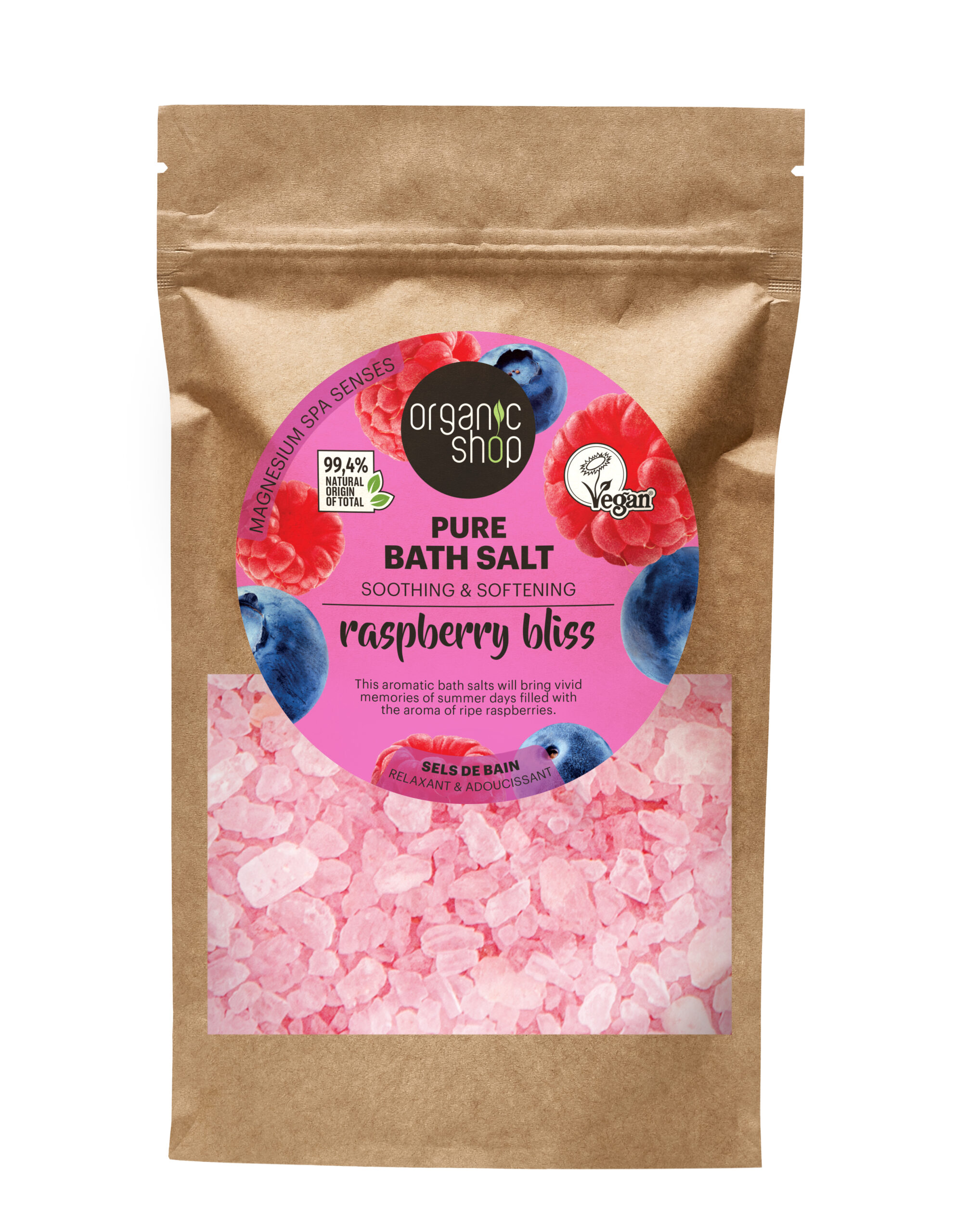 Mineraalirikas kylpysuola auttaa rentouttamaan väsyneitä lihaksia ja jättää ihon miellyttävän pehmeäksi. Raikas, makean marjainen vadelman aromi tekee kylpyhetkestä elämyksen, joka nostaa mielialaa ja tuo arkeen ripauksen luksusta.