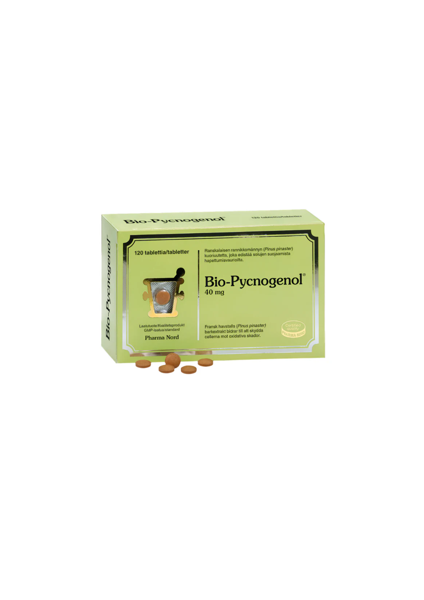 - Pharma Nord Bio-Pycnogenol 40mg tarjoaa korkealaatuisen ja standardoidun Pycnogenol-uutevalmisteen, joka on peräisin ranskalaisesta rannikkomännystä.