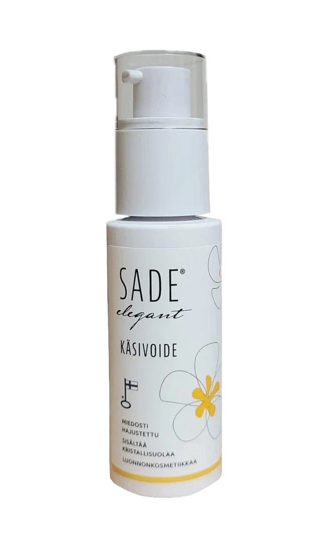 Sade käsivoide on pakattu kätevään pumppupulloon ja tuotteeseen on lisätty kevyt hajuste, joka on peräisin luomu-appelsiiniöljystä.